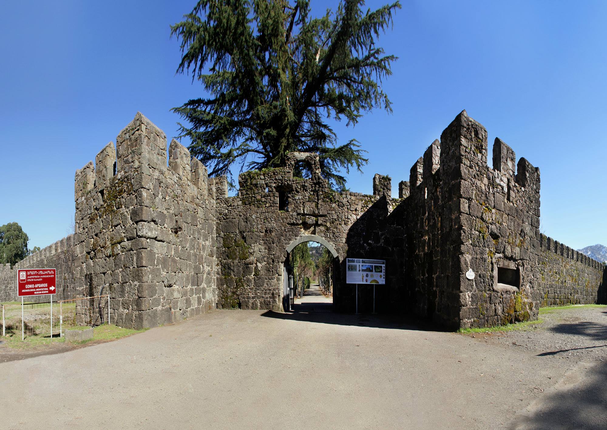 - Главные ворота расположены с южной стороны, на которых видны следы древних боёв.