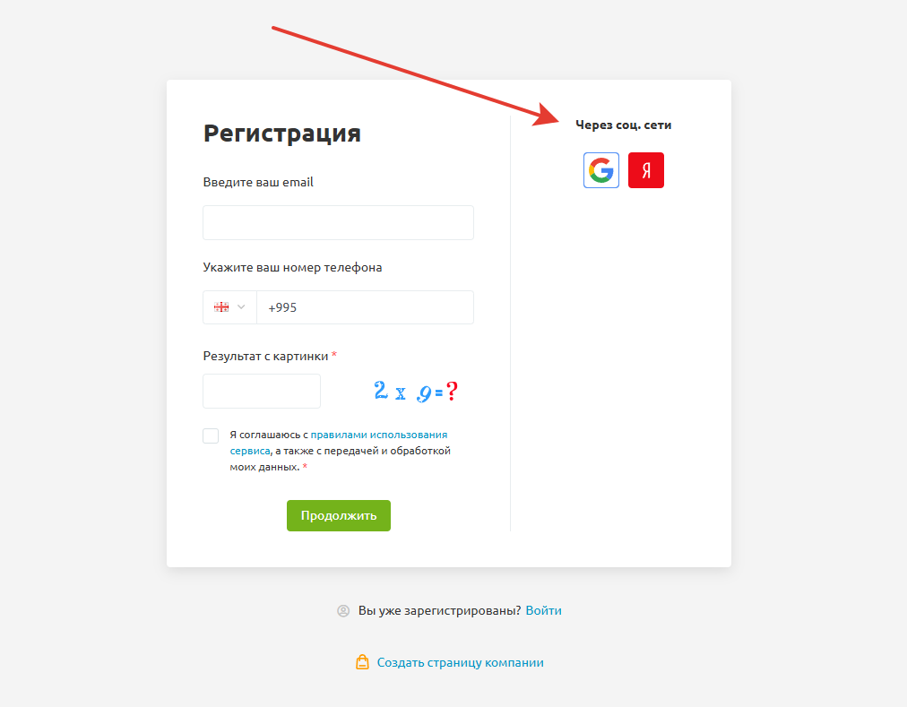 - На странице входа выберите опцию Войти через Google или Войти через Яндекс.