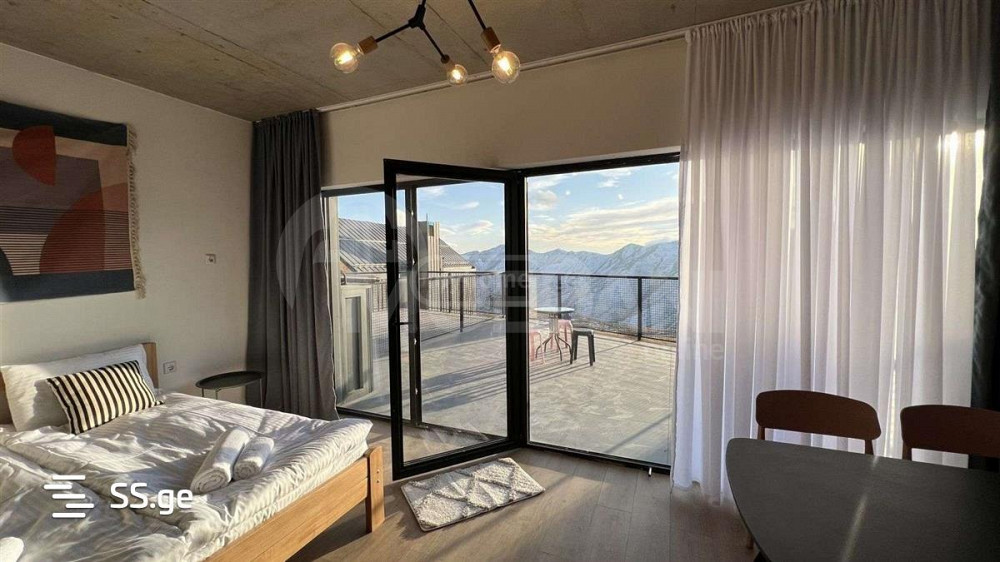 იყიდება ბინა გუდაურში საბაგირო შინოსთან ახლოს ვერანდით, ახალი გარემონტებული, მოწყობილი ავეჯით და ყველა საჭირო საოჯახო ნივთით ( ჩაშენებული ტექნიკა, სამზარეულო, აბაზანის აქსესუარები, თეთრეული, ფარდები, ჭურჭელი, და ა.შ.), იდეალურია ინვესტიციისთვის ან პირადი მოხმარებისთვის.