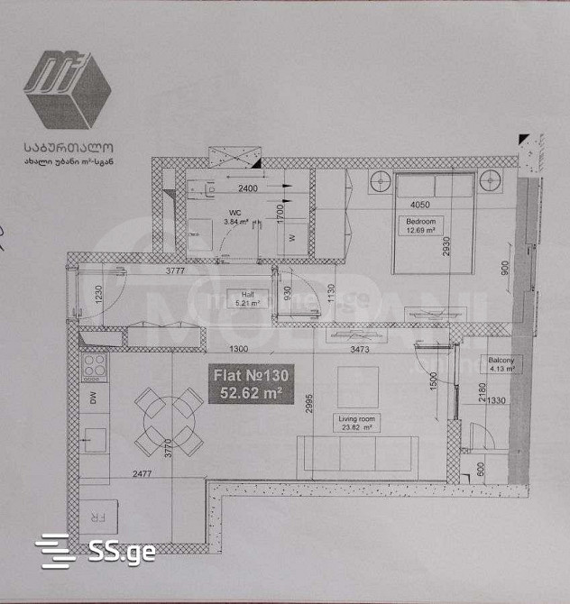 იყიდება 2 ოთახიანი ბინას 52.62მ² 5/10 სართ თბილისი - photo 1